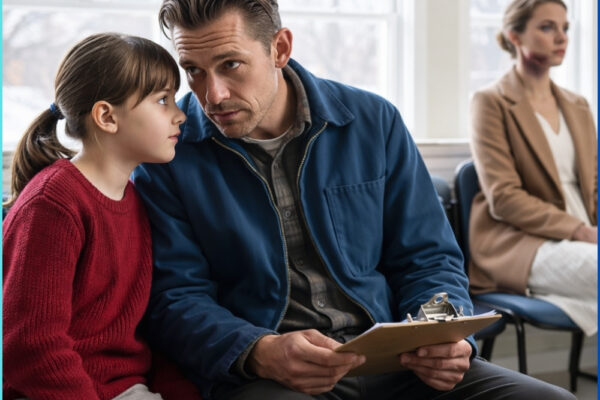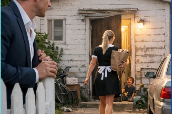 The woman finally looked up. Clear gray eyes. A healing cut on her cheekbone. “He slipped,” she said. “The floor is wet.” “I saw her…