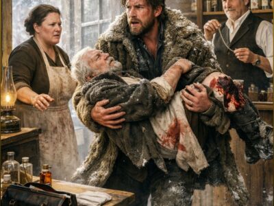 He carried his dying father across the waist-deep snow. At 9:12 p.m., he burst into my pharmacy, his breath chilled by the cold, the blood, and the despair, while the chief physician stood at the counter, twirling a silver watch chain between his clean fingers. His father’s leg had been rotting for 21 days, and half the population here had valued the old man’s grave against 400 acres of forest