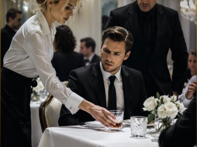 Then he turned, opened the door, and disappeared into the corridor, leaving the card on the table beside a poisoned glass and Elena Rivera with the terrible sense that her life had just been split into before and after.