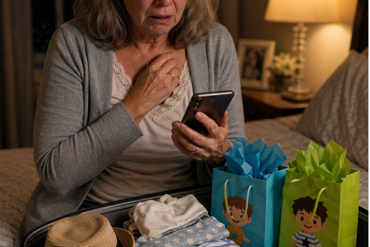 The driveway still held the whole ugly shape of what he’d set in motion. Candace’s SUV idled crooked near the gate. The rented trailer behind it sagged a little on one side under blue tarp and ratchet straps. One of the boys had cracked open his back window and was staring out with a juice box in his hand, straw bent. Owen’s mother was still in the second car, one hand on the steering wheel, face set in that frozen look she gets when she plans to turn the whole thing into someone else’s lack of grace later.