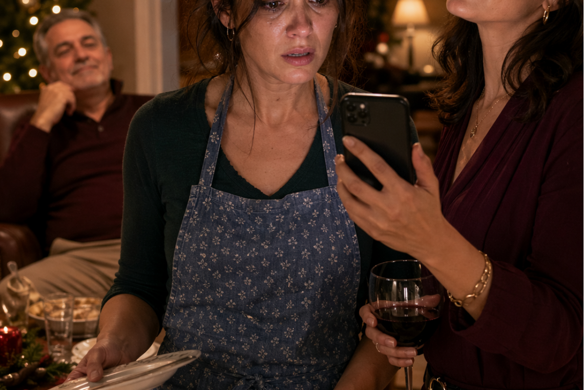 I could see now that her left hand was shaking. Just slightly. Enough that she tucked it against her right wrist to quiet it. The pantry behind us smelled like onions and flour and whatever perfume his mother wore that always left a sharp sweet trail in enclosed spaces. Somewhere in the dining room, a glass broke or tipped over and somebody said, “It’s fine,” in the quick bright tone families use when something is not fine at all.