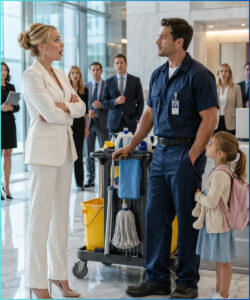 He had pushed a mop past glass walls while powerful people mistook silence for emptiness. He had carried grief, debt, fear, and love through long nights beneath humming lights.