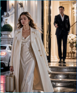 Elena walked through the garden with the scarf pulled low, gravel crunching under her shoes, the house rising behind her like a white stone prison.