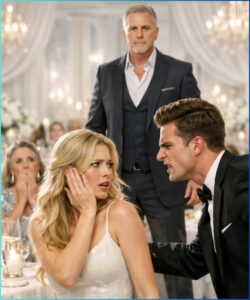Gasps fluttered across the ballroom. My head snapped sideways. My champagne glass slipped from my fingers and shattered against the floor. A ribbon of bubbles ran through the white linen like a vein opening.