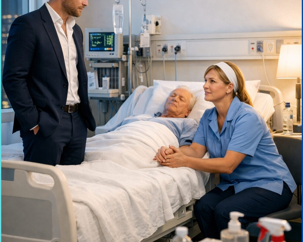 HE RAN TO THE HOSPITAL READY TO PAY FOR EVERYTHING, BUT THE WOMAN GUARDING HIS FATHER ALL NIGHT WAS THE JANITOR HE NEVER NOTICED