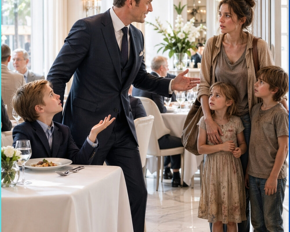 “Dad, Can They Eat With Us?” The Boy Asked—Then the Millionaire Stood Up and Did The Unexpected