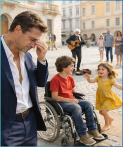 She swayed in front of him, then beside him, then circled the wheelchair with the solemn concentration of a child inventing a ceremony. There was nothing polished about it. No choreography. No performance smile. Just instinct and kindness and music stretching itself across a wound no adult had been able to reach.